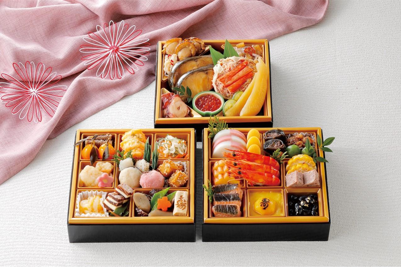 【札幌市中央卸売市場発】北海道札幌市中央卸売市場は全国から沢山の食材が集まる味覚の宝庫です。その中から目利きのエキスパート「せり人」が選りすぐった食材を新年を迎えるにふさわしいおせち料理として重箱に盛り込みました。北海道産の海鮮を中心とし、おせちでは珍しい具材も積極的に取り入れた他にはない三段重です。